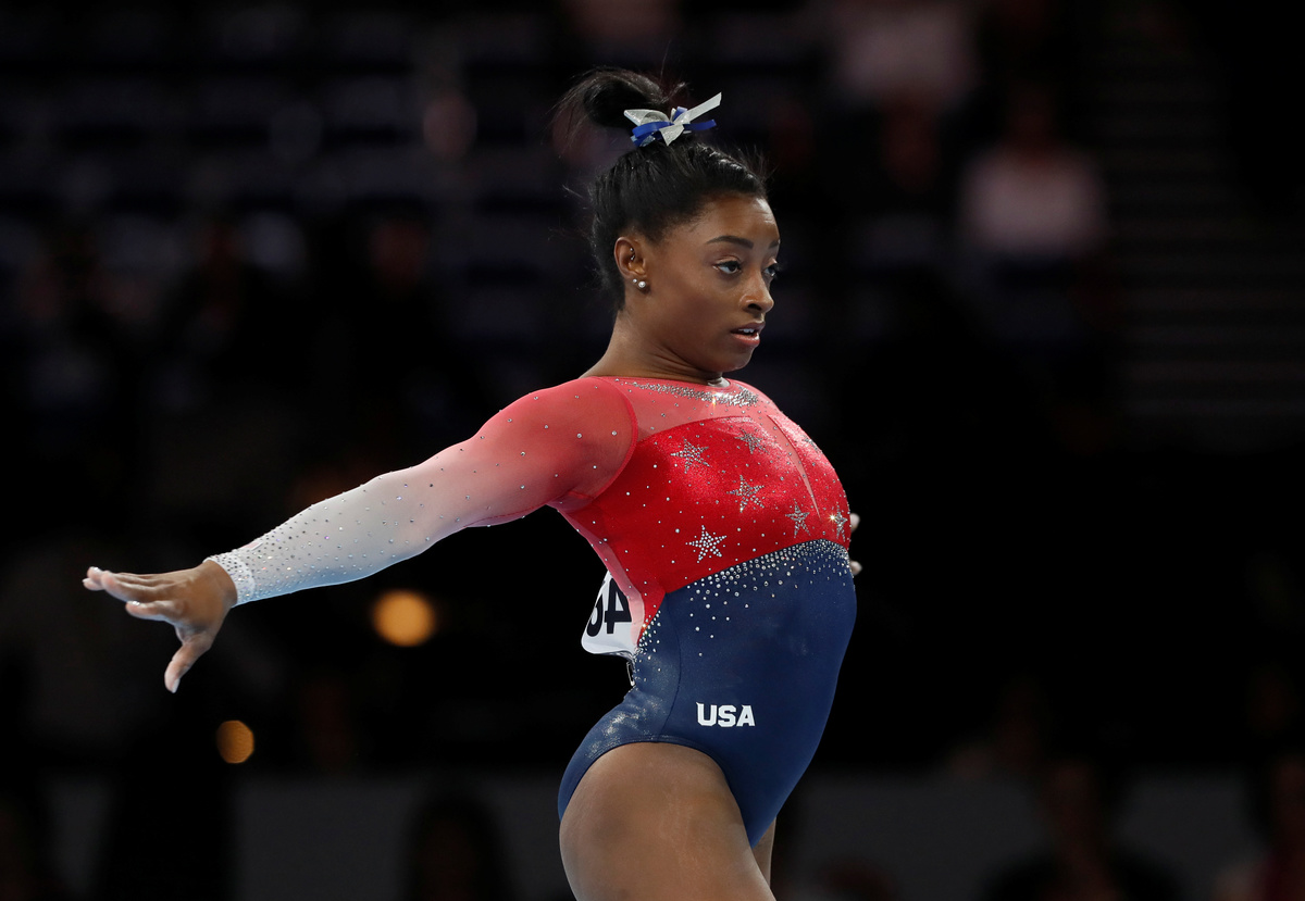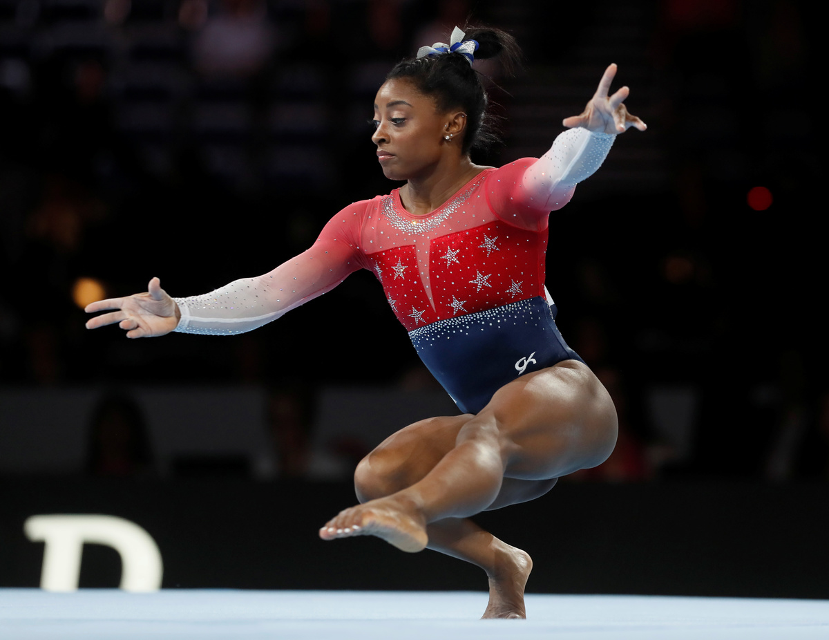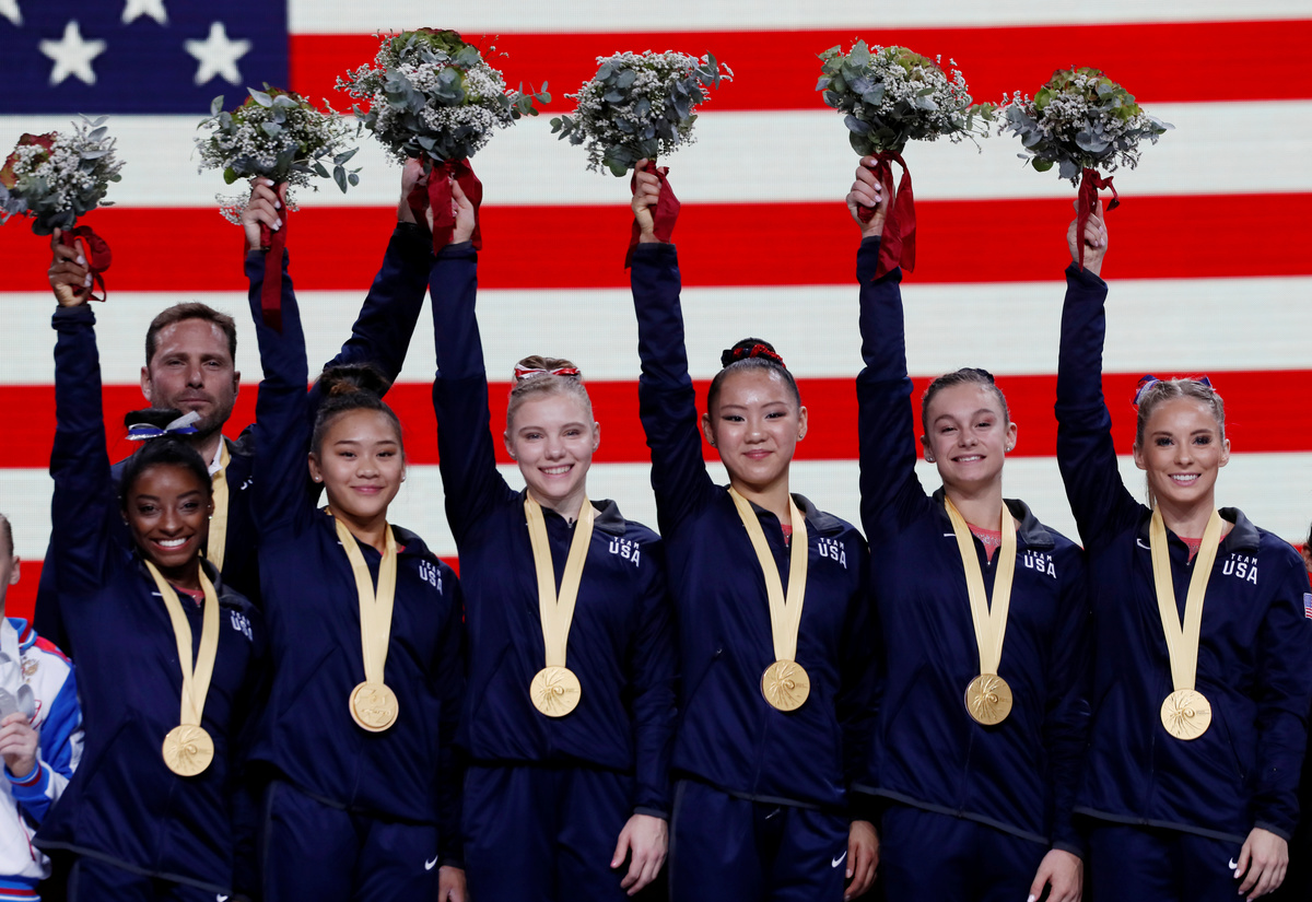 (Reuters) - The United States women cruised to their fifth consecutive team title at the gymnastics world championships in Stuttgart on Tuesday, with Simone Biles becoming the event's most decorated woman.