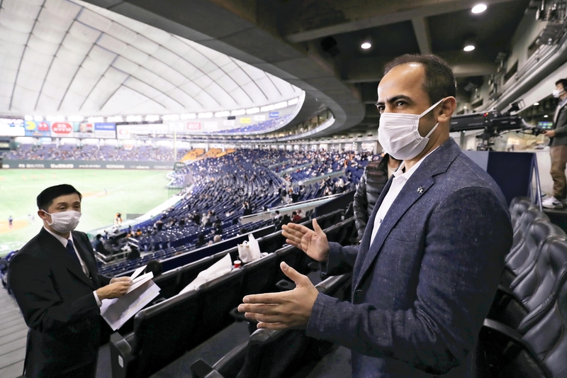 Ambassador of the United Arab Emirates to Japan Shihab Alfaheem visited Tokyo Dome in Bunkyo Ward, Tokyo, on Tuesday to see measures to prevent spread of the novel coronavirus during baseball games.