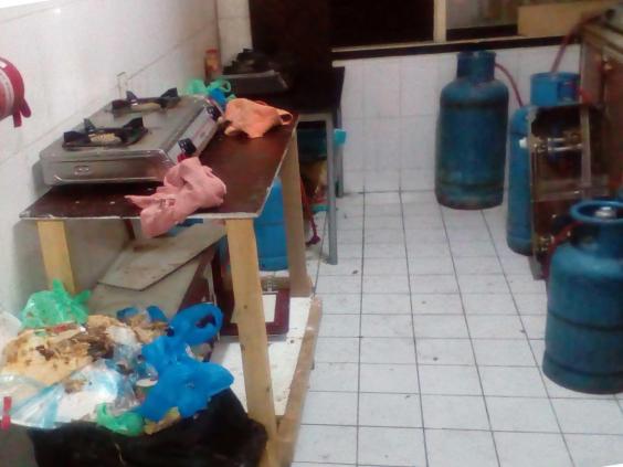 His day starts at 6am, in Mussaffa on the outskirts of Abu Dhabi, when he stumbles out of a dorm crammed with bunk-beds and lined by power outlets to wait his turn to use the toilet, which is shared with the eight other men in the room. When there is time to cook, they use a dingy, slim kitchen with an overflowing rubbish bin and basic gas stoves to heat food. But there often isn't time. The bus for Yas Island leaves at 6am.