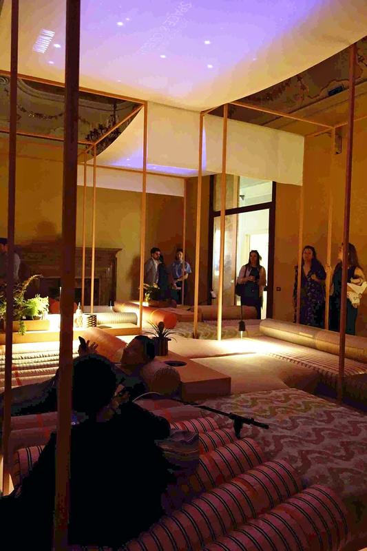 The Italian edition of interior design magazine Elle Decor configured a room geared toward the internet-savvy demographic of millennials -- those who reached young adulthood at the turn of the 21st century. The room included a smart speaker and a large bed with an overhead projector screen. The design gave visitors a peek into the envisaged world of a generation that has come of age in the internet era.
