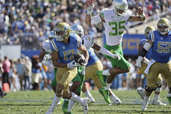 Another UCLA penalty proved pivotal later in the quarter when Bruins cornerback Nate Meadors was called for pass interference on third down. UCLA defensive end Jaelan Phillips, making his return from the ankle injury that had sidelined him since Sept. 16, later sacked Burmeister but was called for a facemask on the play, giving the Ducks the ball at the UCLA four-yard line.