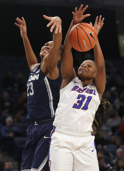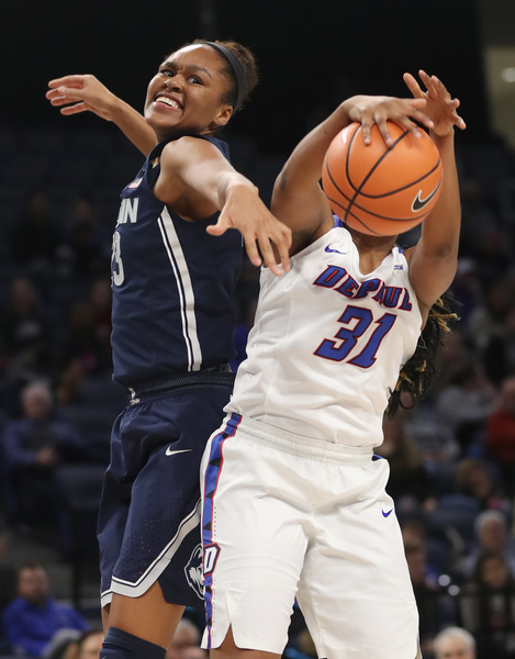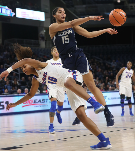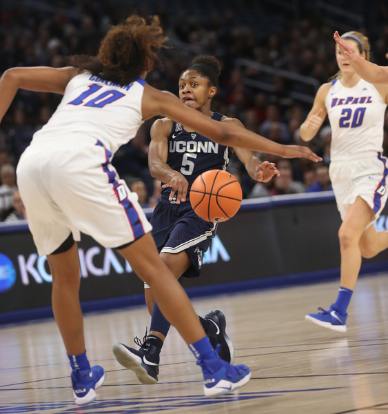 They converted seven and shot 34.2 percent overall in the first half. DePaul was running and pressing, but UConn kept control of the game through most of the half.