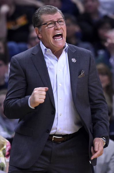 The victory Saturday was Geno Auriemma's 112th in the NCAA Tournament. That ties him with Pat Summitt for most in NCAA history.