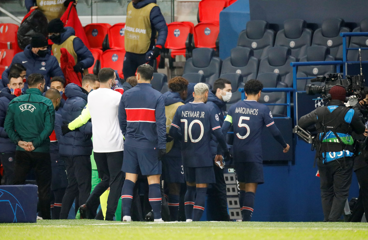 Players from both sides, as well as the three new on-field match officials, took a knee before the game resumed the following day with PSG winning 5-1 at the Parc de Princes.