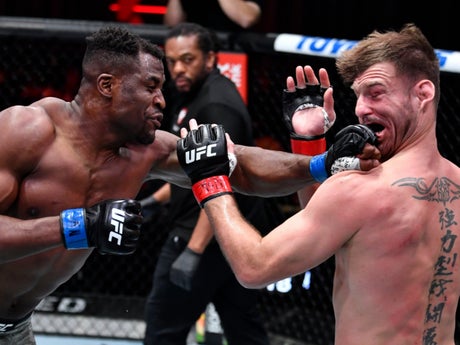 Coming into Saturday night’s main event at the UFC’s Apex institute in Las Vegas, Ngannou was enjoying an almost identical streak, having added former champions Junior dos Santos and Cain Velasquez to his victims list as well as Curtis Blaydes for a second time and Jairzinho Rozenstruik.
