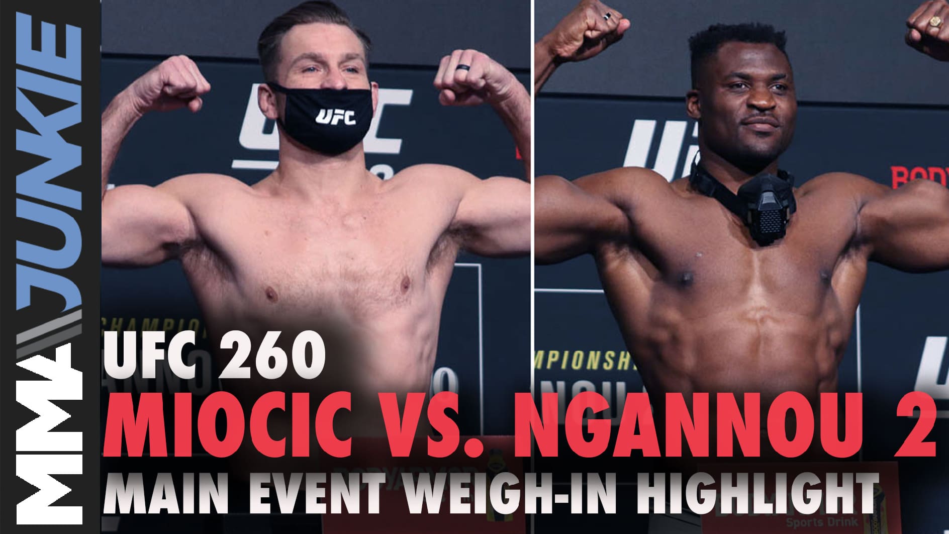Miocic (20-3 MMA, 14-3 UFC) and Ngannou (15-3 MMA, 10-2 UFC) made weight Friday for their headlining clash. Miocic came in at 234 pounds, while Ngannou tipped the scale at 263. For Ngannou, that’s how much he weighed for their first fight in January 2018; Miocic at that time weighed in at 246.