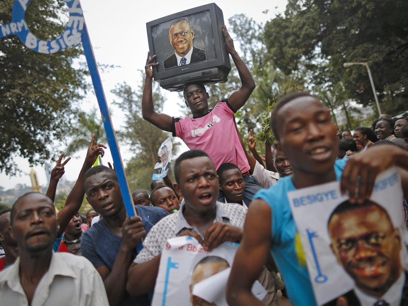 Mr Museveni’s message, that only he can keep peace in the country once ravaged by the murderous regimes of Milton Obote and Idi Amin, resonates most with the older population. In an effort to widen his youth appeal, he recorded a rap track last summer, singing the lyrics himself, that Uganda’s Daily Monitor described as “more of a rendition of a nursery rhyme than an original composition”. Meanwhile, he was so tickled by the song “Tubonga Naawe” (“We Stand with You”), released at the outset of his campaign, that he rewarded the entertainment industry with a 400 million shilling (£79,600) donation – although it never became a hit.