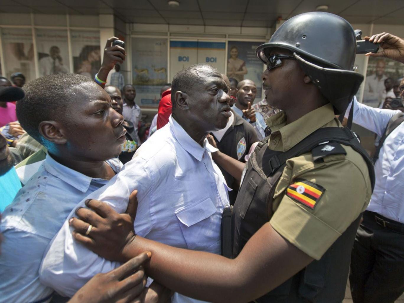 Running for the fourth time against Mr Museveni, Mr Besigye, 59, fought with the President in the bush war against Milton Obote between 1981 and 1986, when he was also his personal physician. He broke with the regime shortly before the 2001 elections, and after his arrest in connection with treason in June of that year, fled into exile for four years. He has repeatedly accused the state of rigging election results, and said recently that he had been arrested 43 times since the 2011 polls.