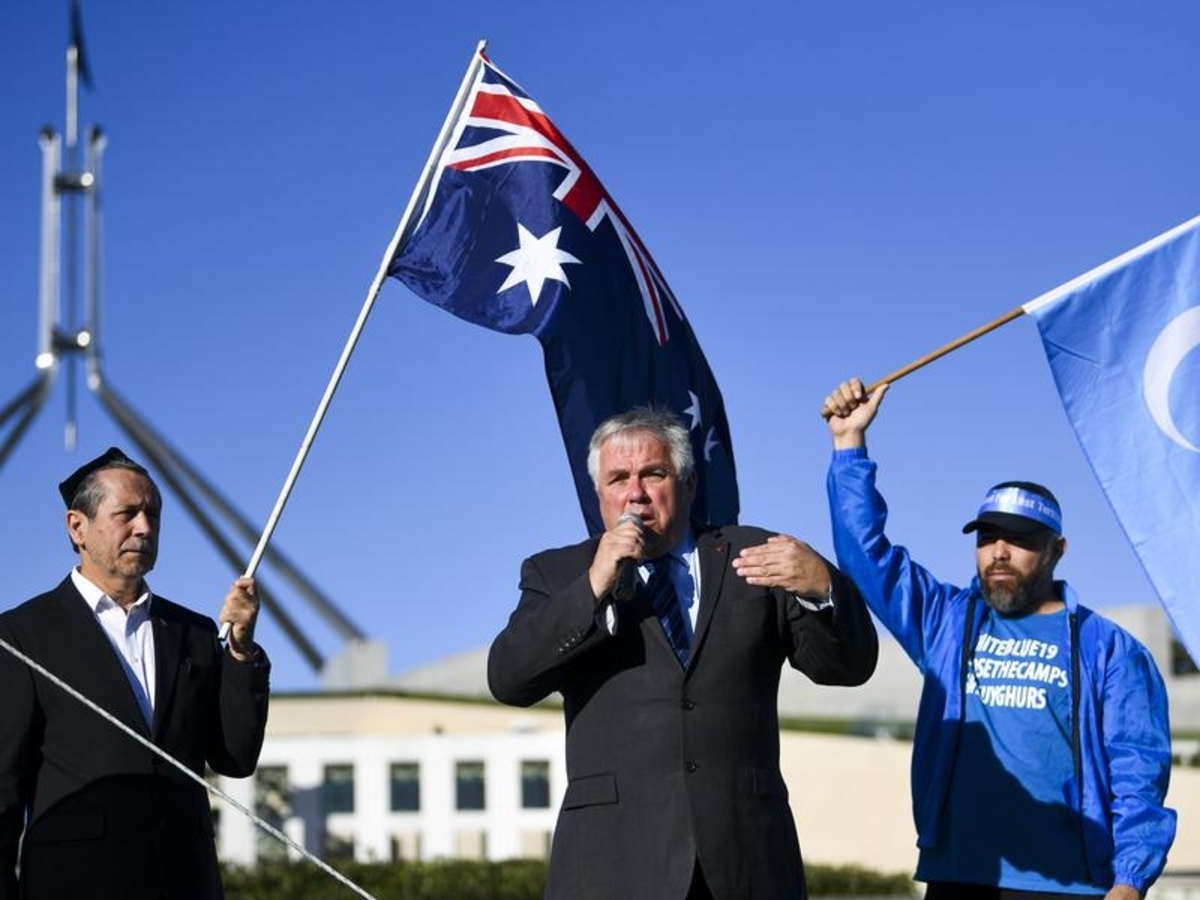 Uighurs chanting "China stop lying" and "China stop genocide" have rallied in front of federal parliament calling for the government to save their children, cousins and parents.