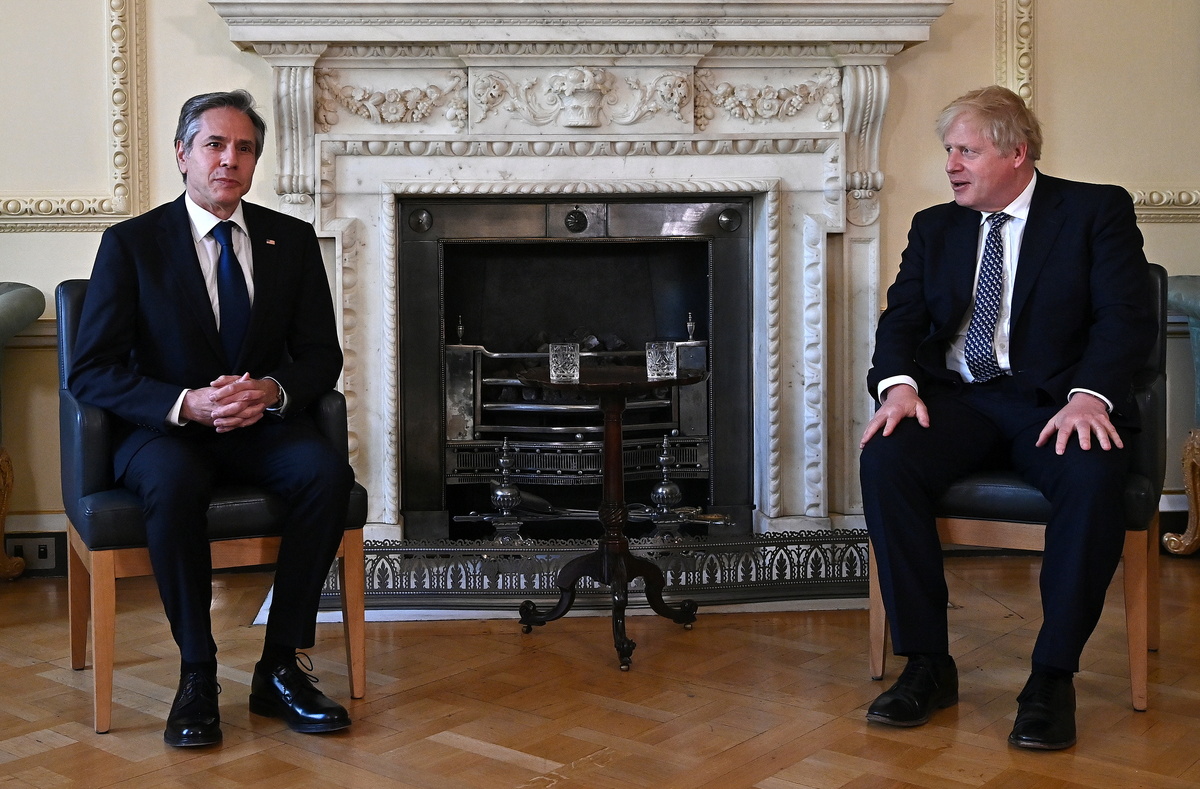 British Prime Minister Boris Johnson and U.S. Secretary of State Antony Blinken agreed on the need for a global rollout of COVID-19 vaccines to end the pandemic, Downing Street said on Tuesday after the pair met in London.