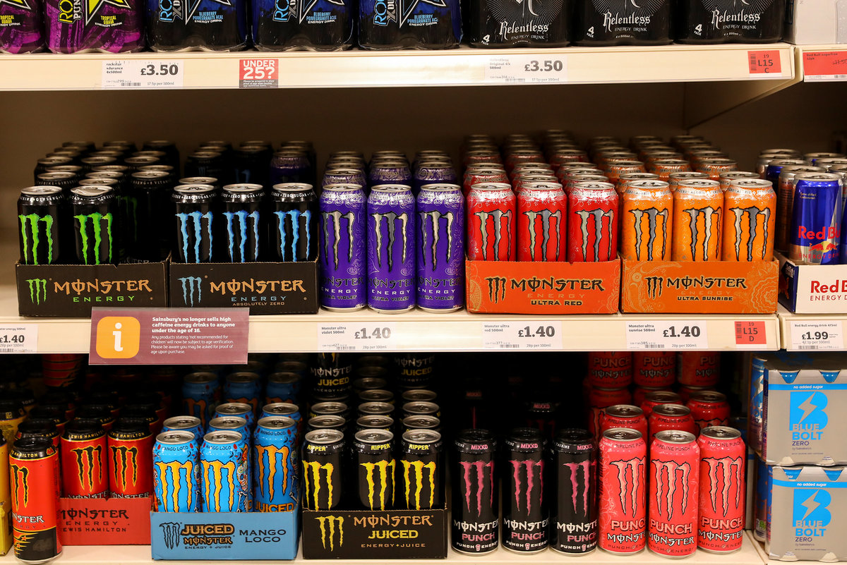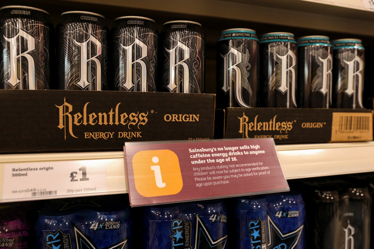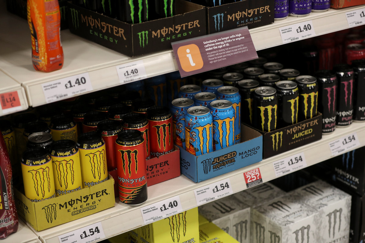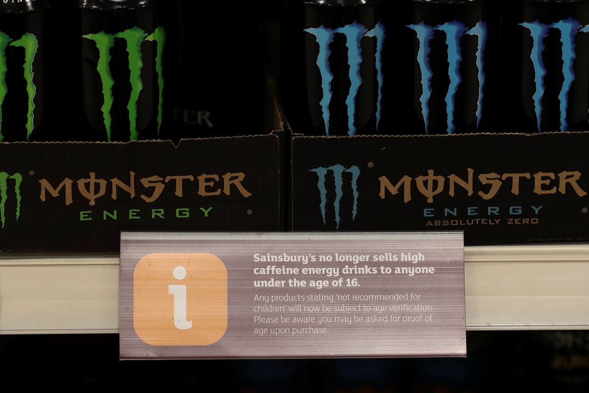 A sign for energy drinks stands on display at a Sainsbury's store in London, Britain, August 30, 2018. REUTERS/Simon DawsonRed Bull and Monster energy drinks sit on display at a Sainsbury's store in London, Britain, August 30, 2018. REUTERS/Simon DawsonCans of Monster energy drinks sit on display at a Sainsbury's store in London, Britain, August 30, 2018. REUTERS/Simon DawsonA selection of energy drinks sit on display at a Sainsbury's store in London, Britain, August 30, 2018. REUTERS/Simon DawsonA selection of energy drinks sit on display at a Sainsbury's store in London, Britain, August 30, 2018. REUTERS/Simon DawsonMonster energy drinks sit on display at a Sainsbury's store in London, Britain, August 30, 2018. REUTERS/Simon DawsonA selection of energy drinks sit on display at a Sainsbury's store in London, Britain, August 30, 2018. REUTERS/Simon DawsonA sign stating the energy drinks will not be sold to anyone under 16 sits next to cans of Monster at a Sainsbury's store in London, Britain, August 30, 2018. REUTERS/Simon DawsonRed Bull and Monster energy drinks sit on display at a Sainsbury's store in London, Britain, August 30, 2018. REUTERS/Simon Dawson