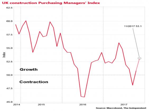 According to the most recent data from the Office for National Statistics, the construction sector, which accounts for around 6 per cent of GDP, was in recession in the second and third quarters of 2017, with output contracting by 0.5 per cent in the three months to June and 0.9 per cent in the three months to September.