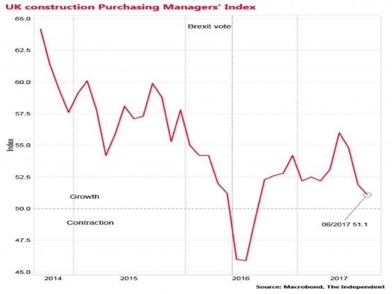 Any figure above 50 signals expansion, but the reading was the lowest since August 2016, when it plunged into negative territory shortly after the Brexit referendum.