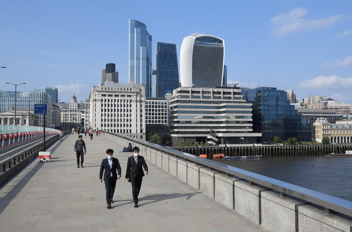 People wearing protective face masks are seen on London Bridge at rush hour, following the outbreak of the coronavirus disease (COVID-19), London, Britain, May 4, 2020. REUTERS/Toby Melville