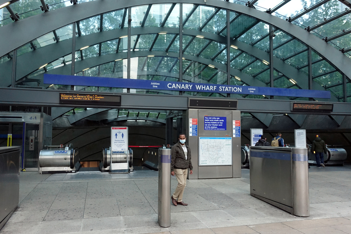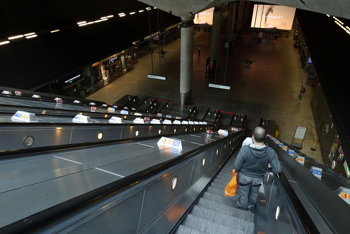 A woman wearing a scarf is seen in Tooting, following the outbreak of the coronavirus disease (COVID-19), London, Britain, May 4, 2020. REUTERS/Hannah McKayA sign regarding social distancing is seen at the Canary Wharf station, following the outbreak of the coronavirus disease (COVID-19), London, Britain, May 4, 2020. REUTERS/Adam OliverA woman waits for a train at North Greenwich station, following the outbreak of the coronavirus disease (COVID-19), London, Britain, May 4, 2020. REUTERS/Adam OliverA man wearing a protective face mask is seen leaving the Canary Wharf station, following the outbreak of the coronavirus disease (COVID-19), London, Britain, May 4, 2020. REUTERS/Adam OliverGeneral view of escalators at North Greenwich station, following the outbreak of the coronavirus disease (COVID-19), London, Britain, May 4, 2020. REUTERS/Adam OliverGeneral view of people on escalators at Canary Wharf station, following the outbreak of the coronavirus disease (COVID-19), London, Britain, May 4, 2020. REUTERS/Adam OliverGeneral view of people at North Greenwich station, following the outbreak of the coronavirus disease (COVID-19), London, Britain, May 4, 2020. REUTERS/Adam OliverTravel books are left for people to take and enjoy on a pavement in Clapham, following the outbreak of the coronavirus disease (COVID-19), London, Britain, May 4, 2020. REUTERS/Dylan Martinez