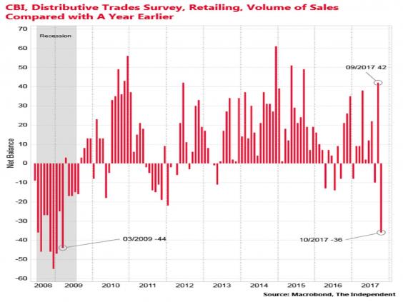 That gave a rounded net reading of minus 36 per cent. This was the worst reading for this survey since March 2009, when the UK was in recession.