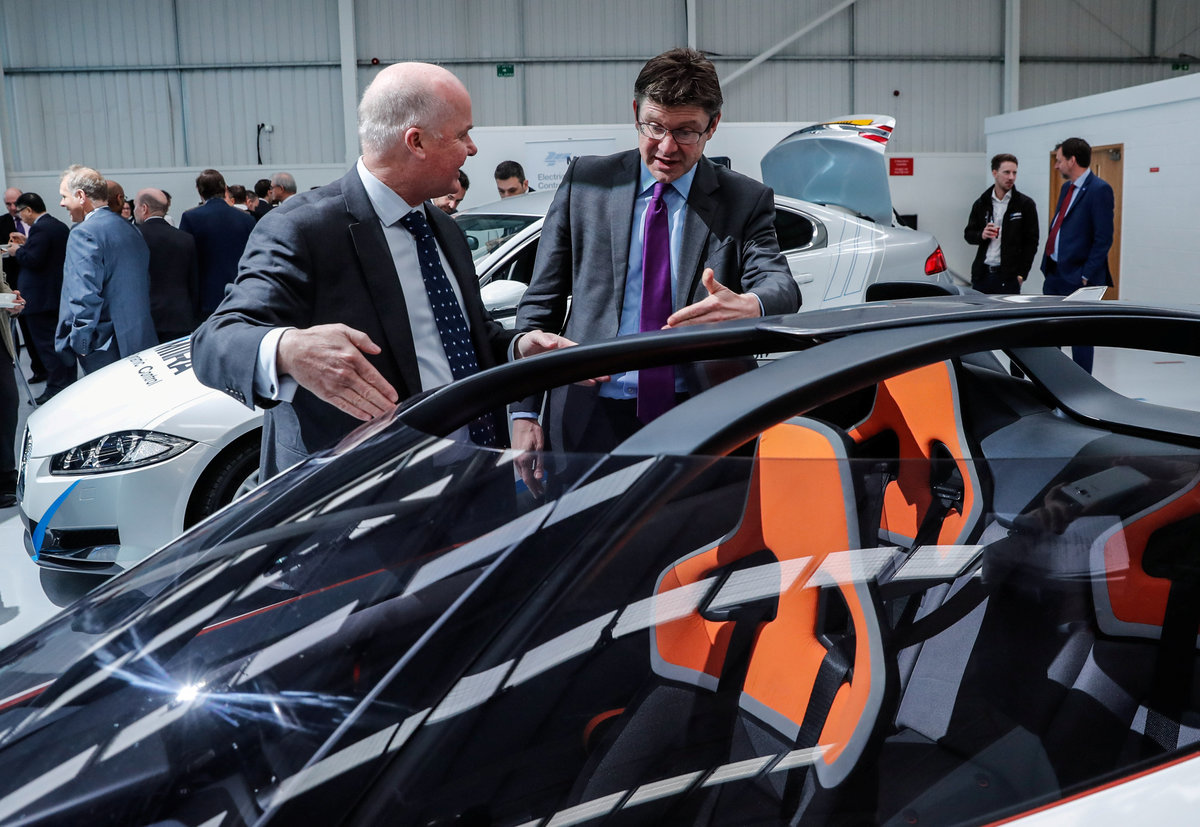 Britain's Secretary of State for Business Greg Clark talks to Craig Wilson, Managing Director of Williams Advanced Engineering at the new production facility for Electric motor manufacturer YASA in Oxford, Britain, February 1, 2018. REUTERS/Eddie Keogh