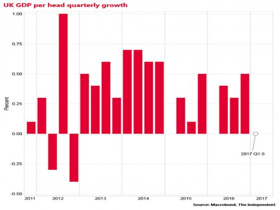 Household consumption, which has powered the economy since last year's referendum, is estimated to have expanded by just 0.3 per cent in the first quarter, slowing markedly from the 0.7 and 0.8 per cent growth in the previous two quarters.