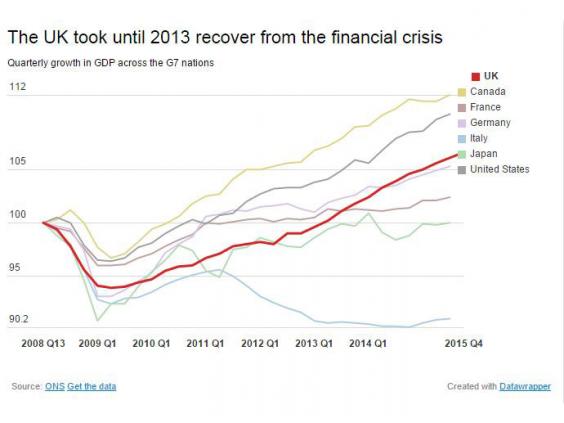 The UK didn’t reach its pre-crisis economic peak until 2013. But since then, economic growth has been faster.