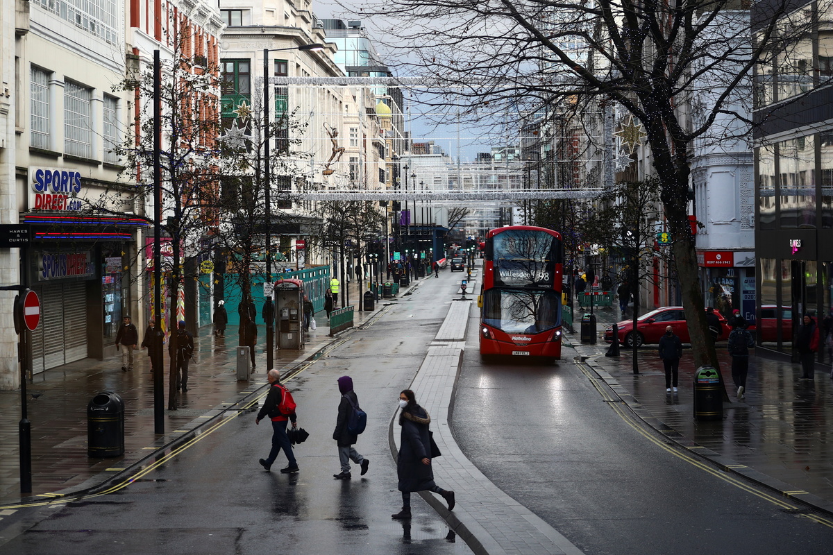 People walk at Oxford Street, amidst the spread of the coronavirus disease (COVID-19) pandemic, in London, Britain December 23, 2020. REUTERS/Hannah McKay