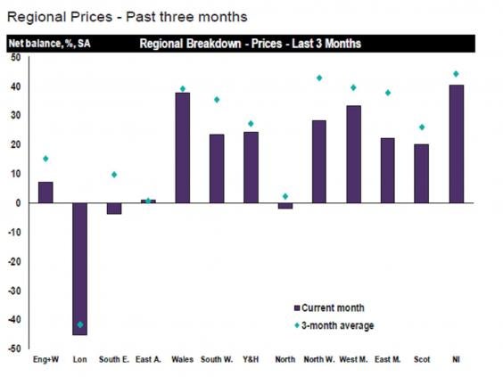 However, RICS also reported a stark regional divergence with a weak housing market picture in London and the South, but relatively strong sentiment from surveyors in the West Midlands, Wales and the North West.