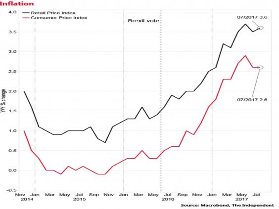 The annual rate of CPI inflation was 2.6 per cent in the month, equal to June's figure and lower than the 2.7 per cent City of London analysts had pencilled in, according to the Office for National Statistics.