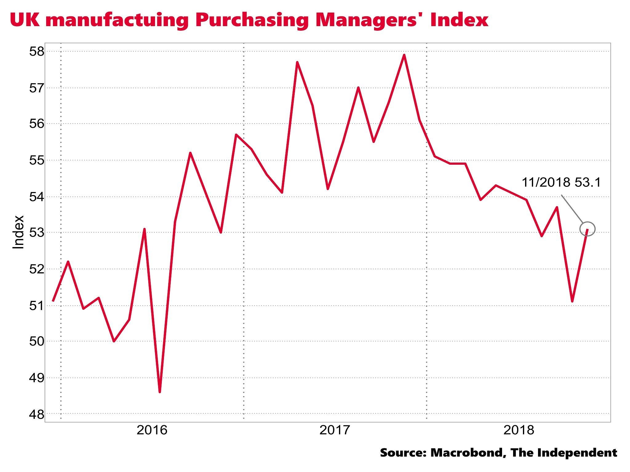 “Manufacturing has largely had a much more challenging 2018 – after a particularly robust second half of 2017 – and it looks to be ending the year largely on the back foot,” said Howard Archer of the EY Item Club.