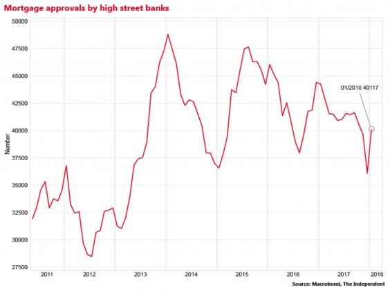 The body, which collects data from British high street banks, reported that there were 40,117 approvals for house purchase in the month, following the slump to just 36,085 in December – the lowest since April 2013.