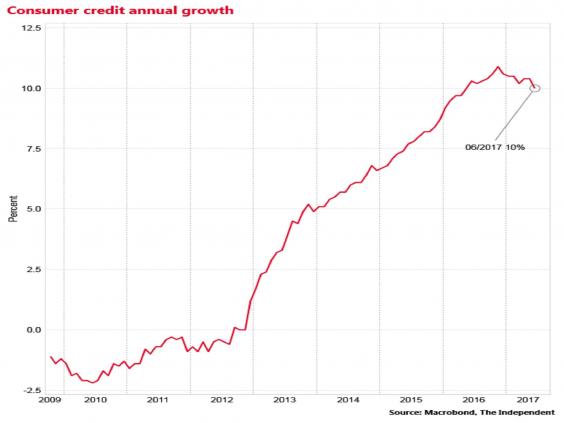 Meanwhile, consumer credit growth, which has caused concern among regulators in recent months, fell slightly, according to the latest Bank data.