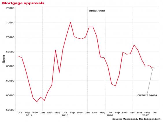 There were 64,684 approvals in the month, down from 65,109 in May and the lowest figure since September 2016, according to the Bank of England's monthly update.