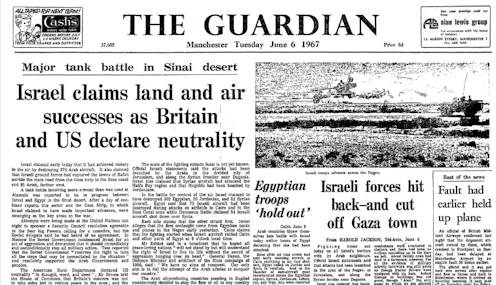 For its highly educated readership, The Manchester Guardian’s Harold Jackson reported from Tel Aviv that the military victory was “unprecedented in modern times”. Israeli forces had won without external support “because they had the better army”. The equipment available to each side was similar, but “wars are won by men and the Israelis had the supreme advantage here”.