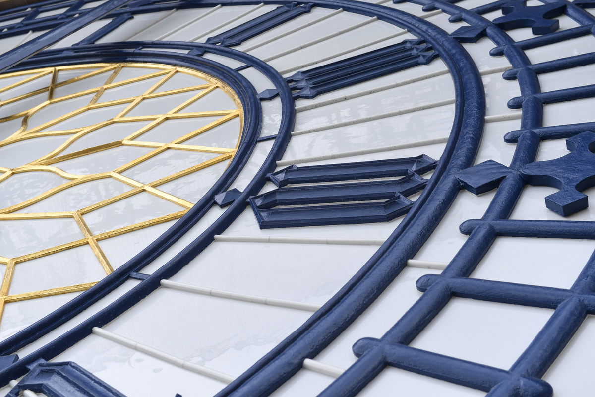 Specialist tradesmen clad in high-vis vests and hard hats working with panoramic views across the London skyline have completed the clock's north dial, with 324 individual new pieces of mouth-blown and hand-cut glass installed into the frame.