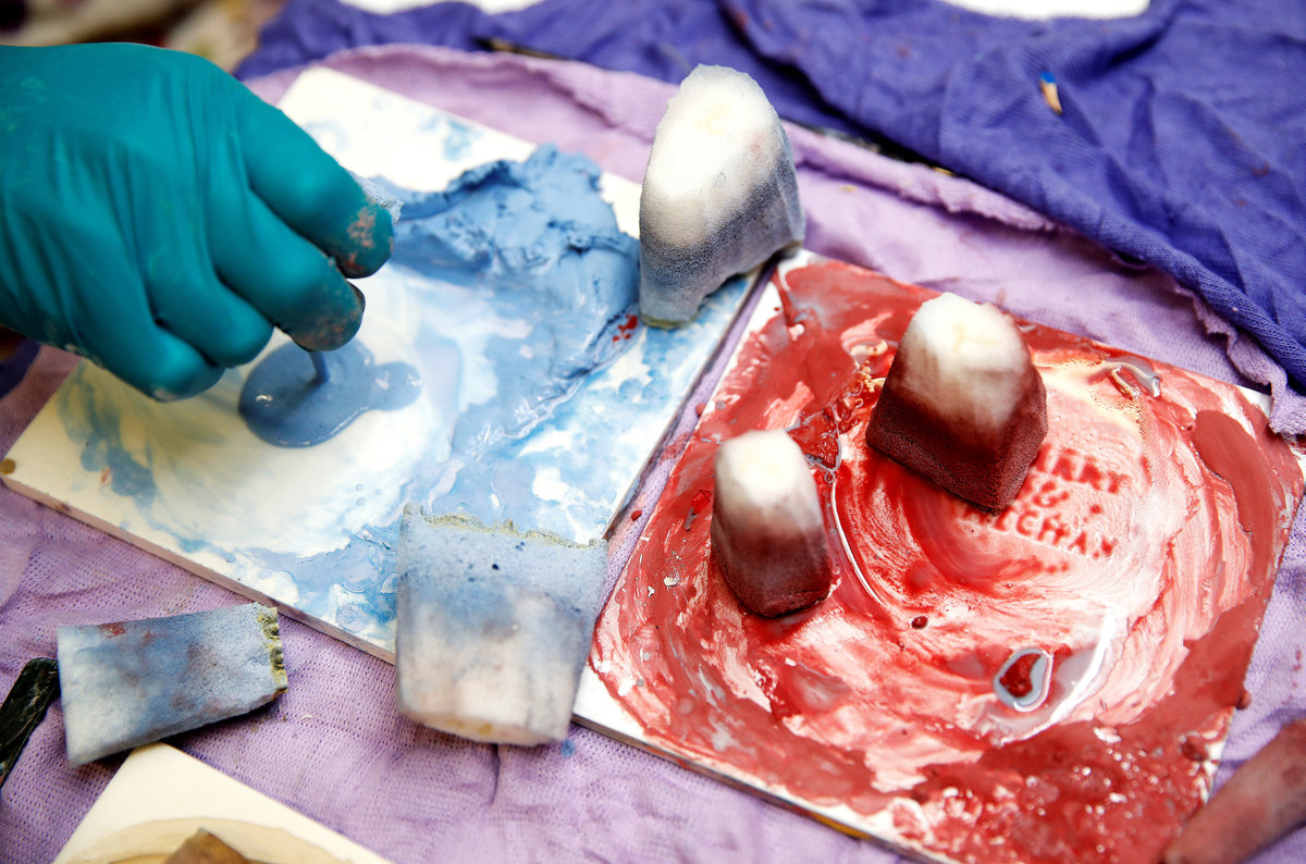 Sitting under rows of bunting made out of Union Jack flags hanging from the ceiling, around 60 workers use traditional techniques to hand-decorate the clay moulds.