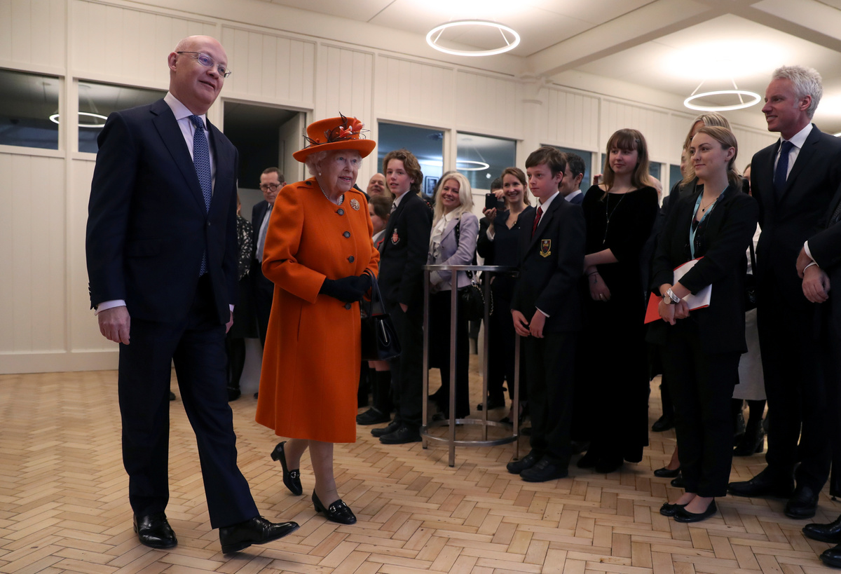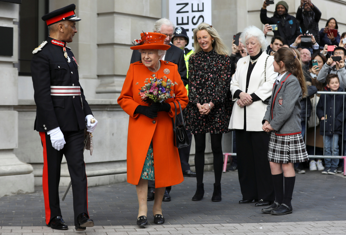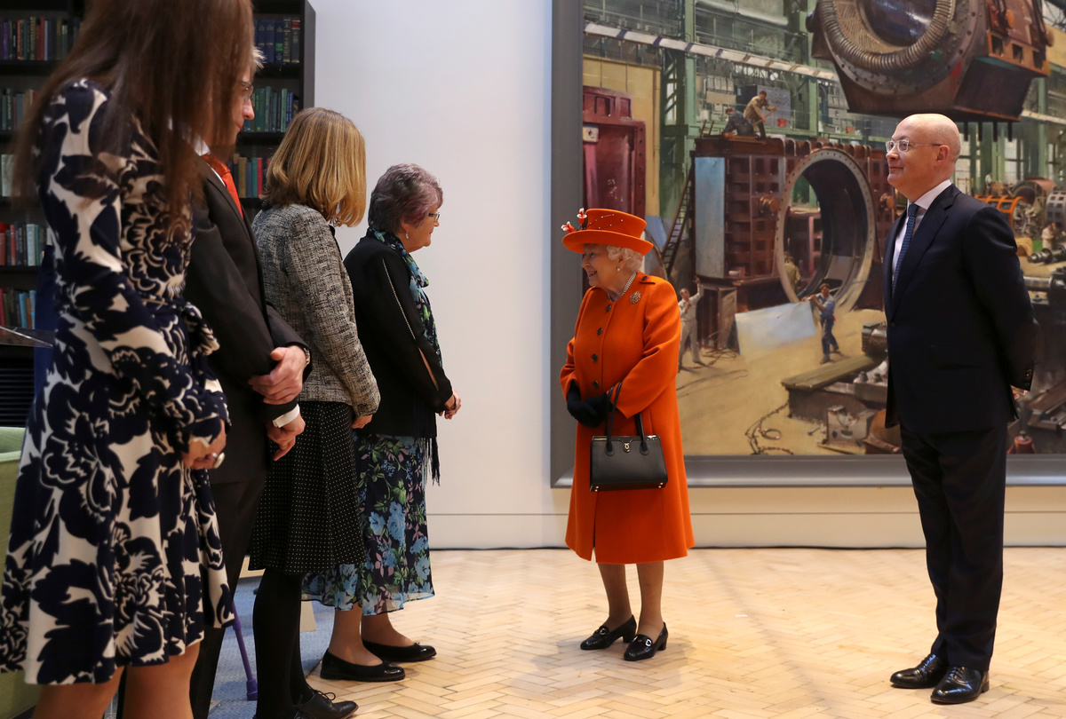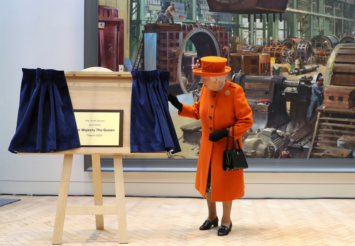 Britain's Queen Elizabeth speaks with members of the family of the British painter Terence Cuneo, next to Science Museum Director Ian Blatchford, during a visit to the museum in London, Britain March 7, 2019. REUTERS/Simon Dawson/PoolBritain's Queen Elizabeth views a painting with Science Museum Director Ian Blatchford during a visit to the museum in London, Britain March 7, 2019. REUTERS/Simon Dawson/PoolBritain's Queen Elizabeth unveils a plaque for the Smith Centre during a visit to the Science Museum in London, Britain March 7, 2019. REUTERS/Simon Dawson/PoolBritain's Queen Elizabeth visits the Science Museum in London, Britain March 7, 2019. REUTERS/Simon Dawson/PoolBritain's Queen Elizabeth leaves after a visit to the Science Museum in London, Britain March 7, 2019. REUTERS/Simon Dawson/PoolBritain's Queen Elizabeth walks with Science Museum Director Ian Blatchford, next to a painting, during a visit to the museum in London, Britain March 7, 2019. REUTERS/Simon Dawson/PoolBritain's Queen Elizabeth is shown photographs of the royal family's previous visits, as Science Museum Director Ian Blatchford looks on, during a tour of the museum in London, Britain March 7, 2019. REUTERS/Simon Dawson/PoolBritain's Queen Elizabeth walks with Science Museum Director Ian Blatchford, into the Smith Centre, during a visit to the museum in London, Britain March 7, 2019. REUTERS/Simon Dawson/Pool