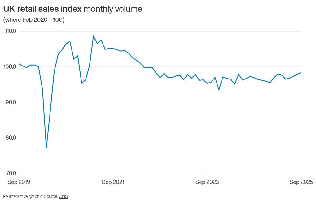 The Office for National Statistics (ONS) said the total volume of retail sales is estimated to have risen by 0.5% in September.