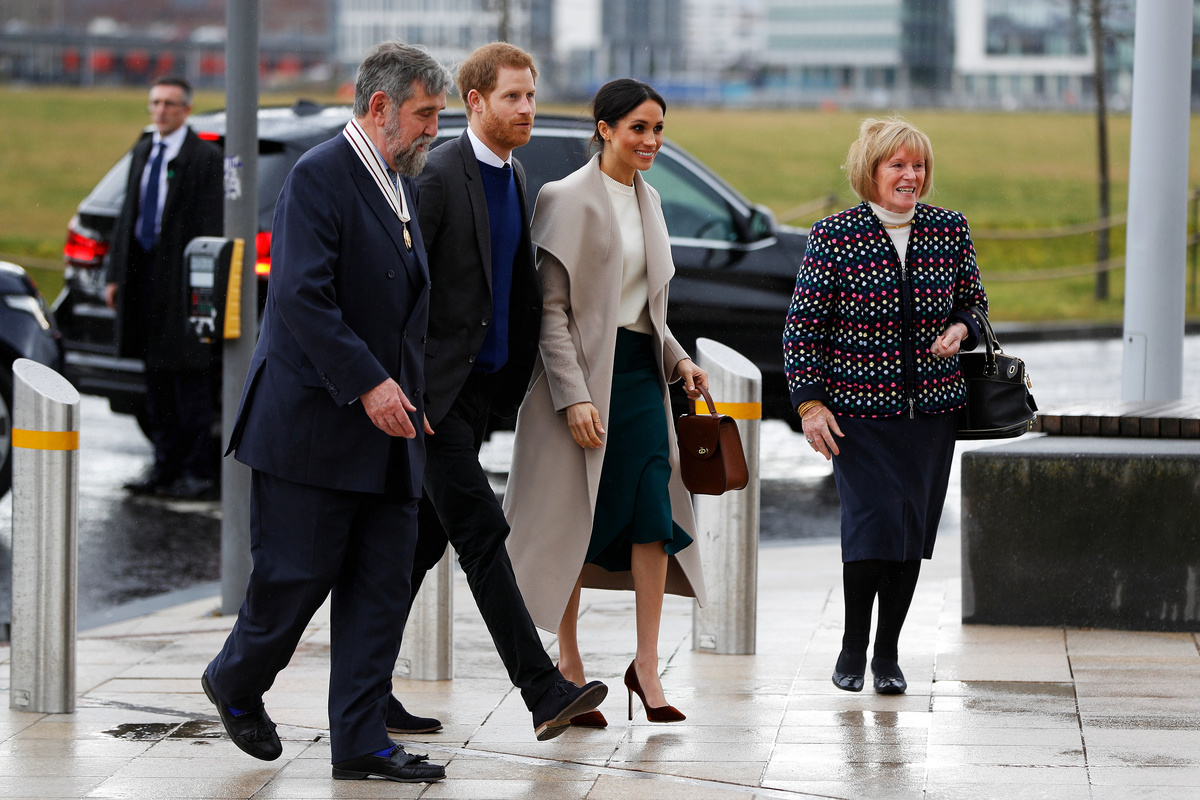 The fiancee of Britain's Prince Harry, Meghan Markle, reacts during a visit to a science park called Catalyst Inc., in Belfast, Northern Ireland March 23, 2018. Chris Jackson/Pool via ReutersBritain's Prince Harry, and his fiancee Meghan Markle, arrive for a visit to the Titanic attraction in Belfast, Northern Ireland March 23, 2018. REUTERS/Darren StaplesThe fiancee of Britain's Prince Harry, Meghan Markle, steps out of a vehicle during a visit to the Titanic attraction in Belfast, Northern Ireland March 23, 2018. REUTERS/Darren StaplesThe fiancee of Britain's Prince Harry, Meghan Markle, meets members of the public during a visit to Belfast, Northern Ireland March 23, 2018. Gareth Fuller/Pool via ReutersThe fiancee of Britain's Prince Harry, Meghan Markle, meets members of the public during a visit to Belfast, Northern Ireland March 23, 2018. Gareth Fuller/Pool via ReutersBritain's Prince Harry (UNSEEN) and his fiancee Meghan Markle meet members of the public during a visit to Belfast, Northern Ireland March 23, 2018. Gareth Fuller/Pool via ReutersBritain's Prince Harry and his fiancee Meghan Markle meet members of the public during a visit to Belfast, Northern Ireland March 23, 2018. Gareth Fuller/Pool via ReutersBritain's Prince Harry and his fiancee Meghan Markle meet members of the public during a visit to Belfast, Northern Ireland March 23, 2018. Gareth Fuller/Pool via ReutersBritain's Prince Harry and his fiancee Meghan Markle visit the Crown Bar in Belfast, Northern Ireland March 23, 2018. Gareth Fuller/Pool via ReutersBritain's Prince Harry and his fiancee Meghan Markle visit the Crown Bar in Belfast, Northern Ireland March 23, 2018. Gareth Fuller/Pool via ReutersBritain's Prince Harry and his fiancee Meghan Markle visit the Crown Bar in Belfast, Northern Ireland March 23, 2018. Gareth Fuller/Pool via ReutersThe fiancee of Britain's Prince Harry, Meghan Markle, meets members of the public during a visit to Belfast, Northern Ireland March 23, 2018. REUTERS/Darren StaplesBritain's Prince Harry smiles after visiting the Crown Bar in Belfast, Northern Ireland March 23, 2018. REUTERS/Darren StaplesBritain's Prince Harry and his fiancee Meghan Markle leave after visiting the Crown Bar in Belfast, Northern Ireland March 23, 2018. REUTERS/Darren StaplesBritain's Prince Harry and his fiancee Meghan Markle arrive for a visit to the Eikon Exhibition Centre in Lisburn, Northern Ireland March 23, 2018. Arthur Edwards/Pool via Reuters