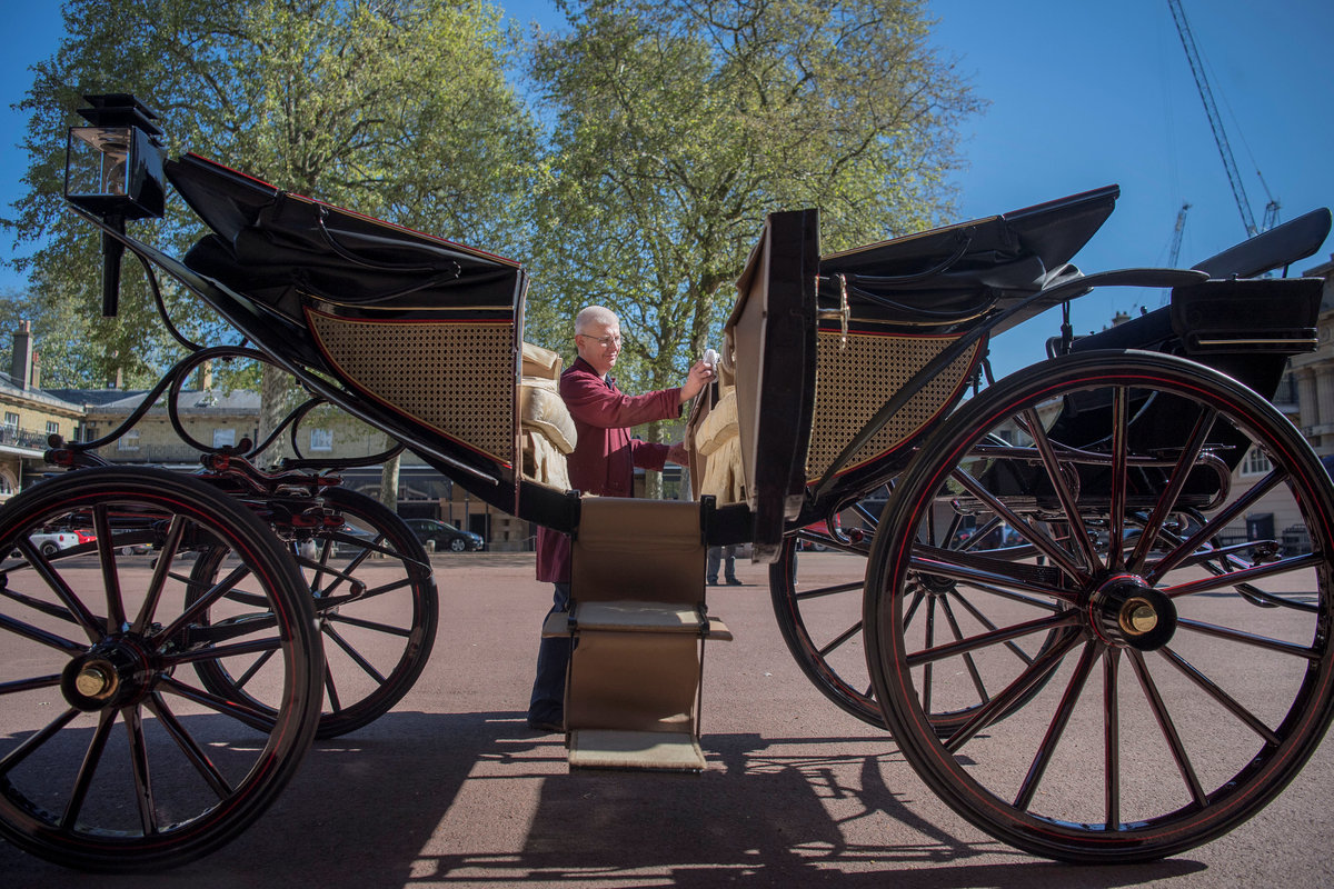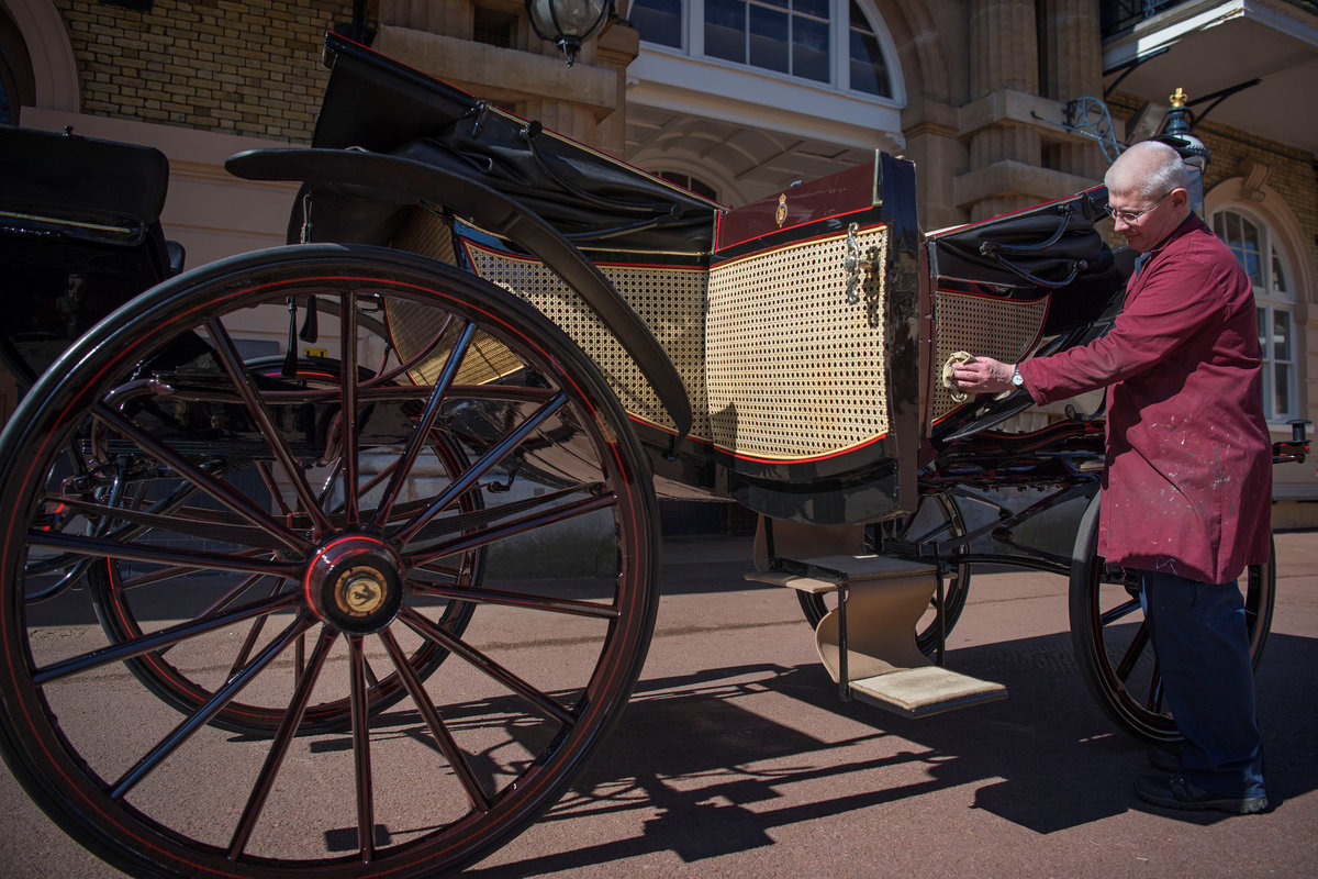 Martin Oates, Senior Carriage Restorer, polishes the Ascot Landau, which will be used in the case of dry weather at the wedding of Prince Harry and Meghan Markle, at the Royal Mews at Buckingham Palace, London. Picture taken May 1, 2018. REUTERS/Victoria Jones/PoolCrown Equerry Colonel Toby Browne, who will be in charge of the horses and carriage, at the wedding of Prince Harry and Meghan Markle, at the Royal Mews at Buckingham Palace, London. Picture taken May 1, 2018. REUTERS/Victoria Jones/PoolA Windsor Grey, one of the four horses that will pull the carriage at the wedding of Prince Harry and Meghan Markle, is groomed at the Royal Mews at Buckingham Palace, London. Picture taken May 1, 2018. REUTERS/Victoria Jones/PoolMartin Oates, Senior Carriage Restorer, polishes the Ascot Landau, which will be used in the case of dry weather at the wedding of Prince Harry and Meghan Markle, at the Royal Mews at Buckingham Palace, London. Picture taken May 1, 2018. REUTERS/Victoria Jones/PoolPhilip Barnard-Brown, Senior Coachman at the Buckingham Palace Mews, leads a Windsor Grey, one of the four horses that will pull the carriage at the wedding of Prince Harry and Meghan Markle, past the Ascot Landau carriage, at the Royal Mews at Buckingham Palace, London. Picture taken May 1, 2018. REUTERS/Victoria Jones/PoolThe Ascot Landau, which will be used in the case of dry weather for the wedding of Prince Harry and Meghan Markle, at the Royal Mews at Buckingham Palace, London Picture taken May 1, 2018. REUTERS/Victoria Jones/PoolA Cleveland Bay horse is seen in the Royal Mews at Buckingham Palace, London, ahead of wedding of Prince Harry and Meghan Markle. Picture taken May 1, 2018. REUTERS/Victoria Jones/Pool