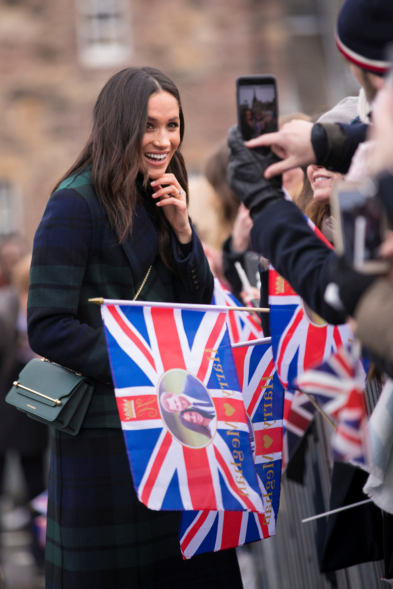 Markle wore a blackwatch tartan coat, one of the checked fabrics associated with Scottish traditional dress.