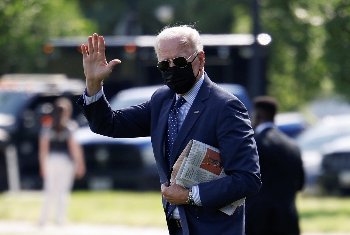 FILE PHOTO: U.S. President Joe Biden waves as he arrives to board Marine One for a flight to Rehoboth Beach, Delaware from the Ellipse near the White House in Washington, U.S., June 2, 2021. REUTERS/Carlos Barria