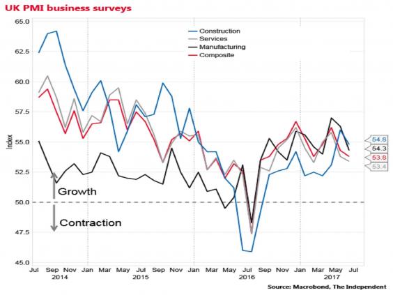 Any reading above 50 signals growth, but Chris Williamson of IHS Markit, which compiles the survey, said: "It's clear that the economy heads into the third quarter losing momentum".