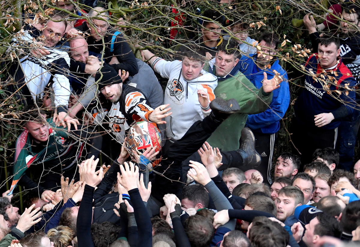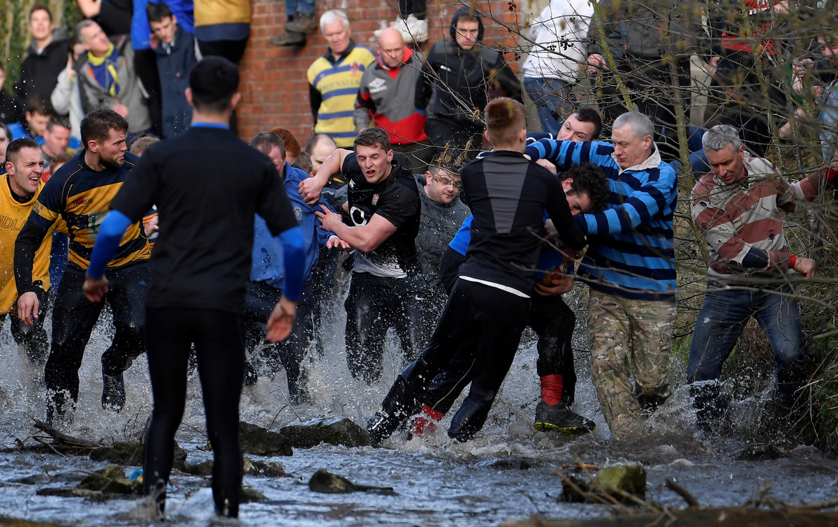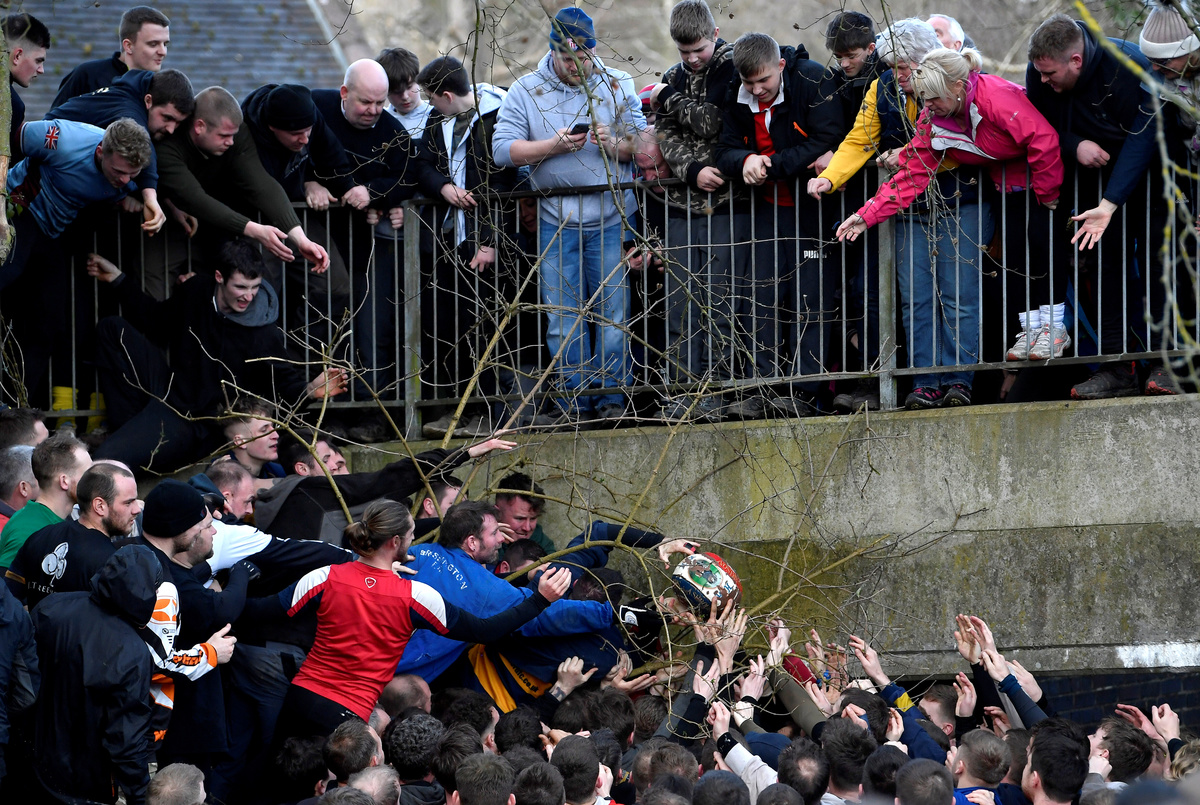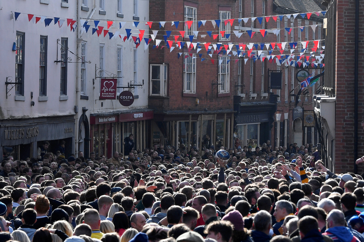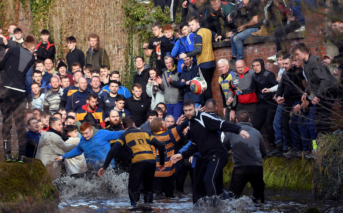 LONDON (Reuters) - Hundreds of people descended on the town of Ashbourne in central England on Tuesday to play a traditional football game in which the rules are hazy and the goals three miles apart.