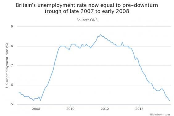 The UK unemployment rate unexpectedly fell to 5.2 per cent in the three months to September, its lowest level in almost 10 years, despite predictions that the jobless rate would remain steady at 5.3 per cent.