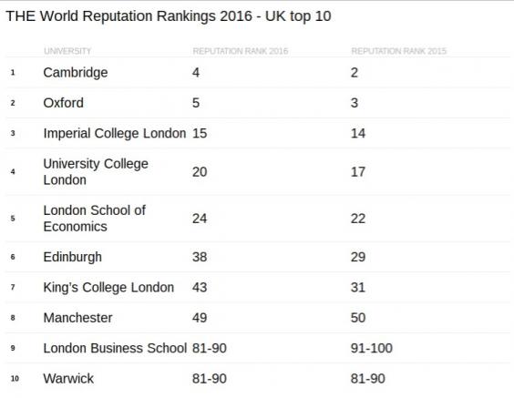 According to Times Higher Education’s (THE) World Reputation Rankings, the UK has just ten universities in the complete 100 - down two on last year - while institutions from across Asia have managed to take up 18 places - an increase of ten on 2015.