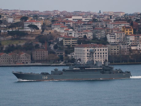 One Type 45 destroyer armed with anti-aircraft missiles and an anti-submarine Type 23 frigate will leave the Royal Navy’s carrier task group in the Mediterranean and head through the Bosphorus into the Black Sea, according to the report.