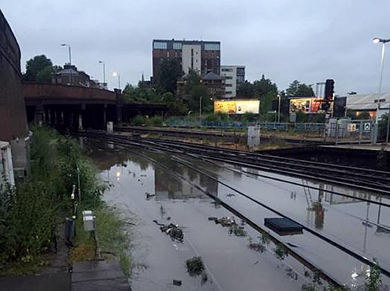 Two fire engines were called to West Norwood train station after smoke started pouring from the flooded track during rush hour. Commuters were evacuated from trains and continued their journey by bus.