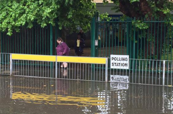 Two polling stations in Kingston upon Thames - Shiraz Miraz and Devon Way - have been forced to close due to flooding.