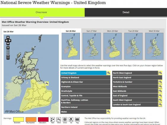 The Met Office's yellow warning of wind, which covers most of England and Wales but not Scotland and Northern Ireland, also advises the estimated six million people expected to travel over the weekend to be aware of possible disruption to their journeys.