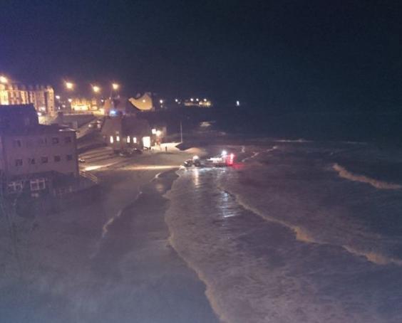 Northumbria Police said officers were called to the scene at 7:44pm and said the sea was “running high”.