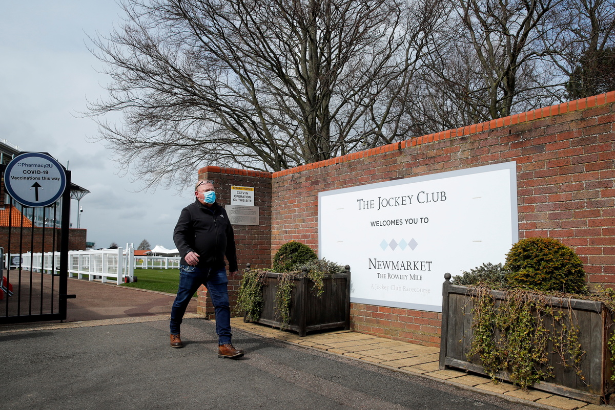 A dose of the AstraZeneca COVID-19 vaccine is prepared in a vaccination centre at Newmarket Racecourse, amid the coronavirus disease outbreak in Newmarket, Britain March 26, 2021. REUTERS/Andrew CouldridgeA woman receives a dose of COVID-19 vaccine in a vaccination centre at Newmarket Racecourse, amid the coronavirus disease outbreak in Newmarket, Britain March 26, 2021. REUTERS/Andrew CouldridgeA man walks past the entrance to a vaccination centre at Newmarket Racecourse, amid the coronavirus disease outbreak in Newmarket, Britain March 26, 2021. REUTERS/Andrew Couldridge