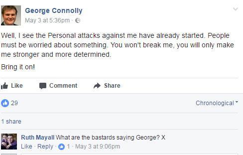 The Independent did, however, notice a sign that all might not be entirely well on the Facebook page of George Connolly, the candidate/unconfirmed candidate.